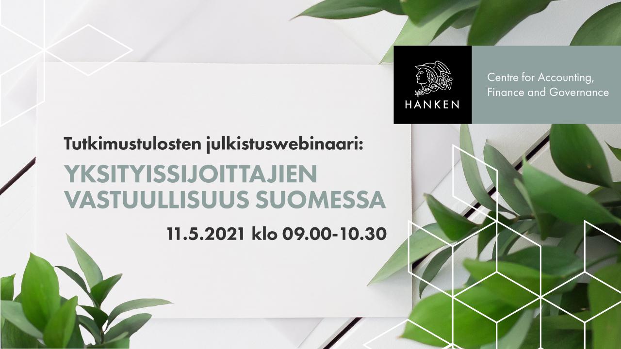 Tilaisuuden järjestää Hanken Centre for Accounting, Finance and Governance ja tutkimukseen liittyvät haastattelupyynnöt ja kysymykset voi lähettää osoitteeseen: AFG_Centre@hanken.fi