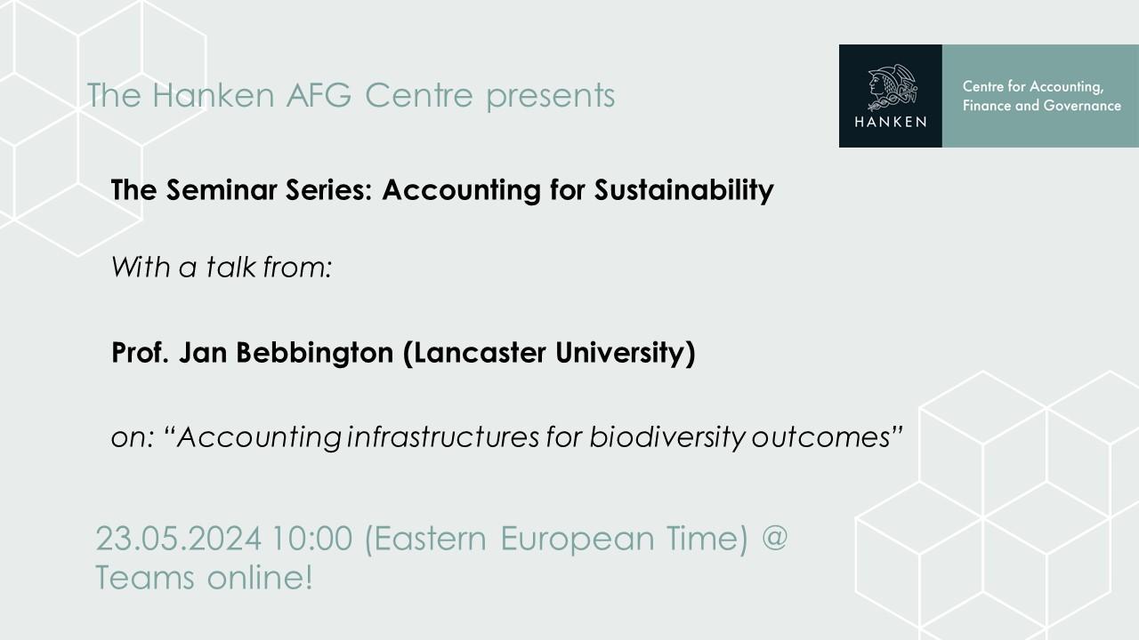 Prof. Jan Bebbington from Lancaster University will talk about her new research: Accounting infrastructures for biodiversity outcomes.