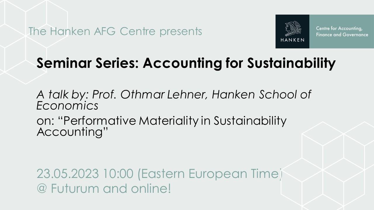 My research focuses on the political-theory performativity of social and environmental accounting (SEA) towards a sustainable and equitable future society. Karen Barad’s agential realism, emphasizing the entanglement of SEA actors and practices in a political apparatus, is used as a framework for understanding and conceptualizing the underlying ethico-onto-epistemological (EOP) assumptions. Bridging accounting and organizational theory and using a Baradian lens on the illustrative case on the Task Force for Climate related Disclosures (TCFD), I introduce a recursive model of SEA’s political-theory performativity that is firmly embedded in these assumptions.