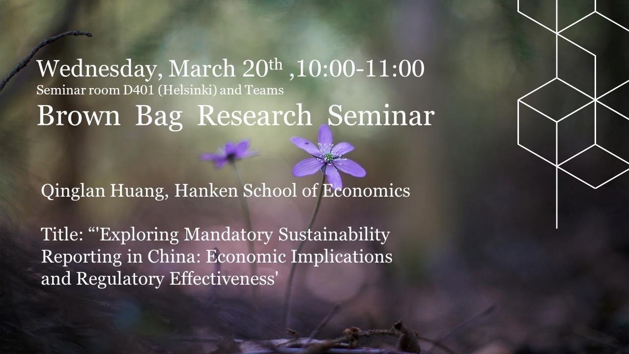 Brown Bag Research Seminar: Exploring Mandatory Sustainability Reporting in China: Economic Implications and Regulatory Effectiveness
