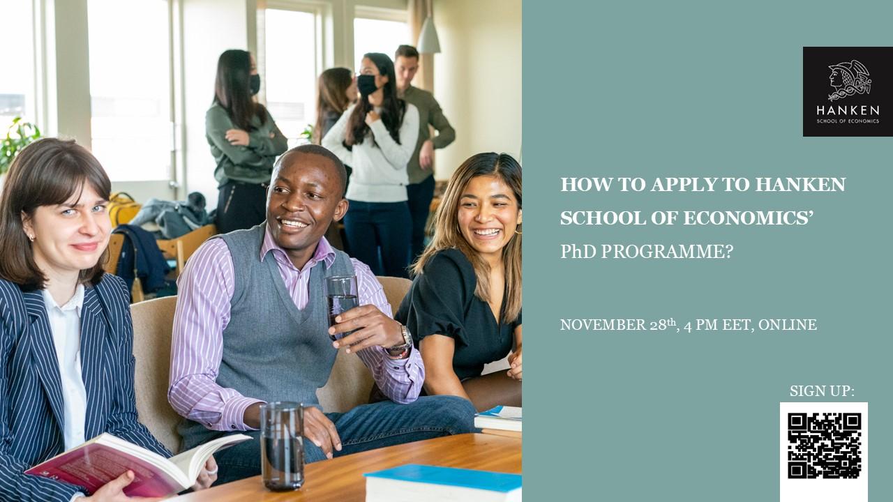 Warmly welcome to participate in this webinar on how to apply to Hanken School of Economics' PhD programme.