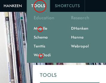 News | 21.01.2015 Where is WebOodi and Moodle? Log in to the website. On the top left corner you find the 'Tools' dropdown menu were WebOodi, Moodle and the other tools are located.