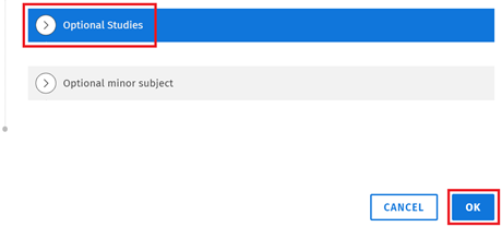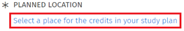 2. Choose where in the study plan you are planning to include the course by clicking Select a place for the credit in your study plan, choosing the header you want to include the course in and clicking Ok.