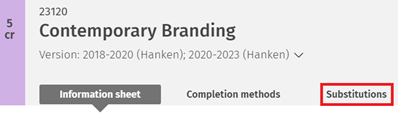 A custom course credit is a credit completed at Hanken, but it doesn't fall under any specific course at Hanken. It is therefore not a substitution of any kind, but "extra" study credits you can get by discussing about a completion method with a teacher. The teacher is not required to enable custom course credits. The teacher handles the registering of the credit via the amanuensis of the subject after the student has completed the credits in the agreed upon way.