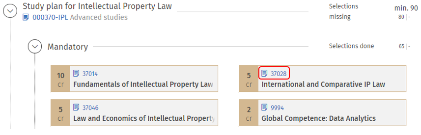 - The correct version of the course is included in the primary study plan = You need to have the correct version of the course in your primary study plan. Add the course to your study plan and select the completion method.