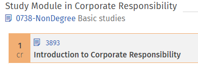 As a student within the Corporate Responsibility module, you will have a specific study right at Hanken for the module. It is called either “Non-degree Studies, Study Module in Corporate Responsibility” or “Joint Non-degree Studies, Study Module in Corporate Responsibility”. These instructions will use the Non-degree studies as an example.