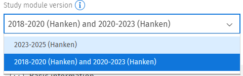 5. After updating the version of the study module you can select courses in it. They will then automatically be in the 2025-2027 version.