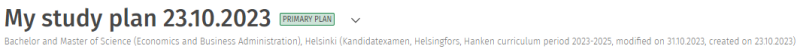 - Curriculum period: If you began your studies before 1.8.2023 you can select between 2020-2023 or 2023-2025, however, please note the differences in the content depending on the version you select. If you began your studies after 1.8.2023, please select 2023-2025.