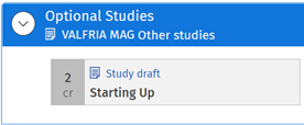 - Scroll down to the heading where you want to add your study draft. It is important that you pick the correct heading on the correct level. Here we will use the MOOC Starting Up at Aalto University as an example. We are planning on including it as an optional course in the degree. Then you first click on Optional studies (the text, not the arrow).