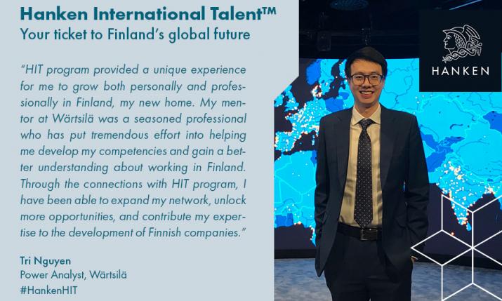 De senaste åren har Hanken HIT utvecklats från ett program man ansökte till, till ett initativ som omfattar alla internationella examenstuderande på Hanken. Idag kan alla studerande få stöd enligt egna behov och intressen, och fritt välja att utföra en studiemodul som erbjuder extra stöd för integration till det finska arbetslivet och samhället. Hanken International talent förändras kontinuerligt för att erbjuda bästa möjliga tjänster åt vår växande skara internationella examenstuderande - både på Hanken och tillsammans med våra intressenter.