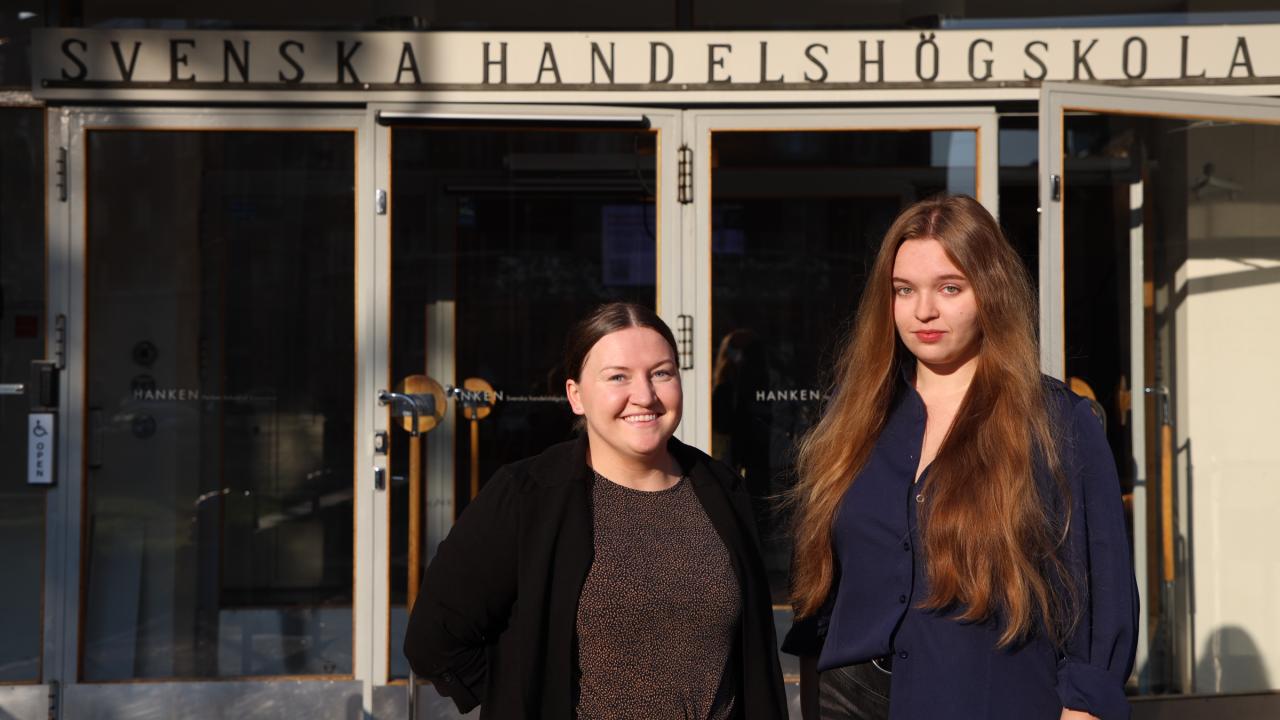 Karinen och Sokolova är en del av den första gruppen studenter i Bachelor in Business-programmet, som inleddes på hösten. De kommer från olika bakgrunder: Karinen har redan en magisterexamen i lingvistik från Helsingfors universitet och driver ett eget konsult- och tränarföretag inom idrott, medan Sokolova kom till Hanken direkt efter att ha avslutat ett IB-program i Joensuu.