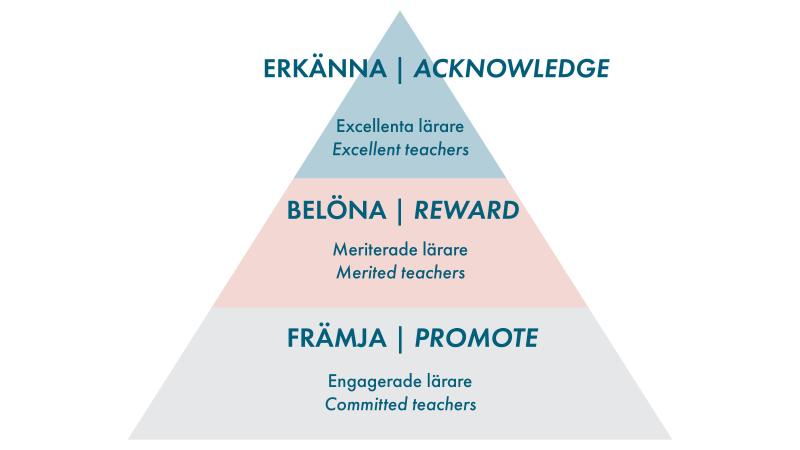 För att stödja våra lärares professionella utveckling har Hanken tagit fram en pyramid för incitament och erkännande inom undervisning. Modellen visar en tydlig progression från grundläggande engagemang i undervisningen till formellt erkännande av pedagogisk excellens. Den består av fem sammanlänkade nivåer: