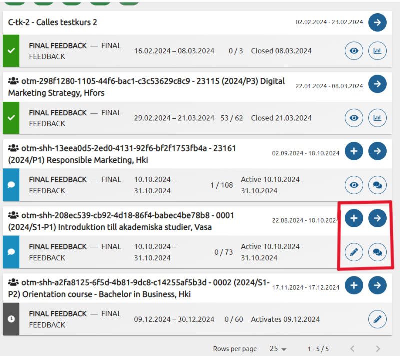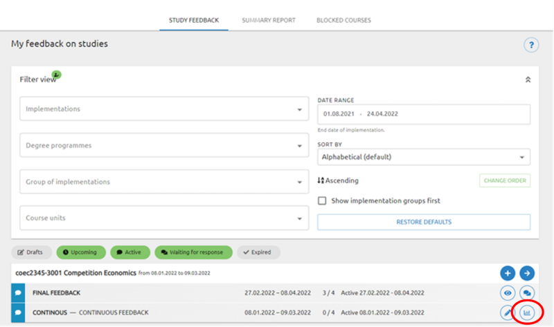 - Välj kursen och gå till återkopplingsresultaten (svara på responsen).