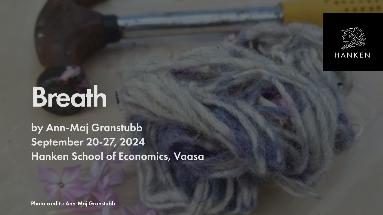 I verket Breath används en begränsad mängd spillmaterial i form av handspunnet garn av textilkonstnären Moa Cederberg. Garnet har färgats med de sju växterna och binds sedan samman med växterna för att slingra sig upp för glasväggen mellan aulan och matsalen vid Svenska Handelshögskolan i Vasa. Istallationen är en del av SDG-veckan som i år hålls 20-27.9.2024 i samband med Hållbarhetsveckan och Global Goals Week.