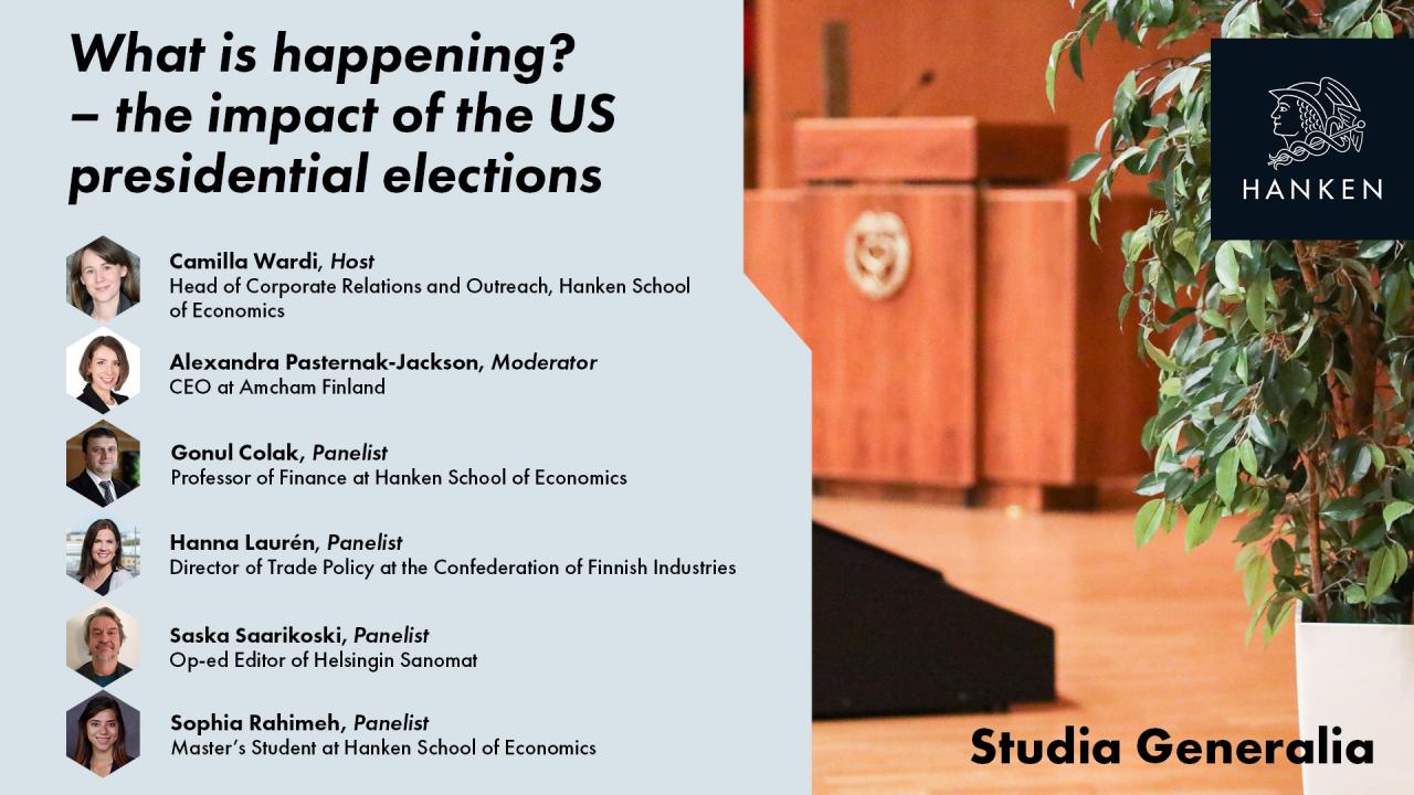The US Presidential elections have an impact also on many of us outside the US. In this session we will look at the elections from different perspectives.