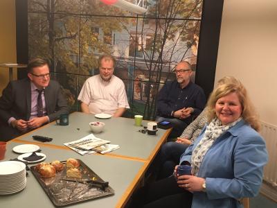 Glädjande många ur personalen dök upp på torsdag 20.4 i Café Paus i Helsingfors då det var dags för den andra träffen med rektorn.