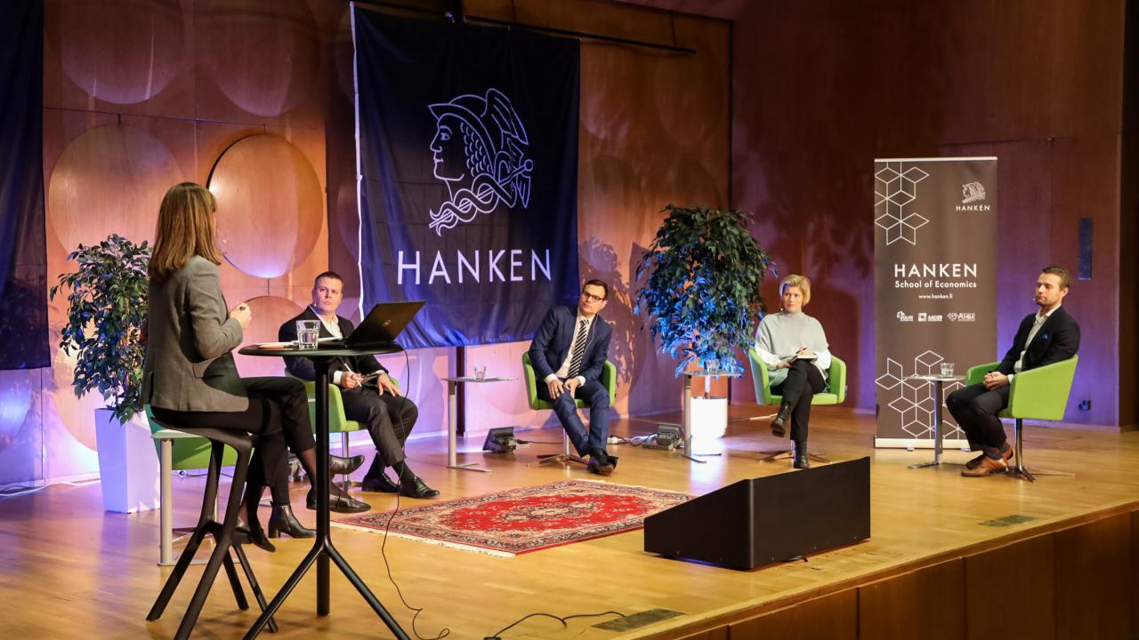 Paneldebatten modererades av Marc Hinnenberg, VD på Hanken & SSE Executive Education. Som programvärd fungerade Camilla Wardi, chef för näringslivsrelationer och samverkan på Hanken. Paneldiskussionen var den andra i serien Sustainable Strategies in Turbulent Times.