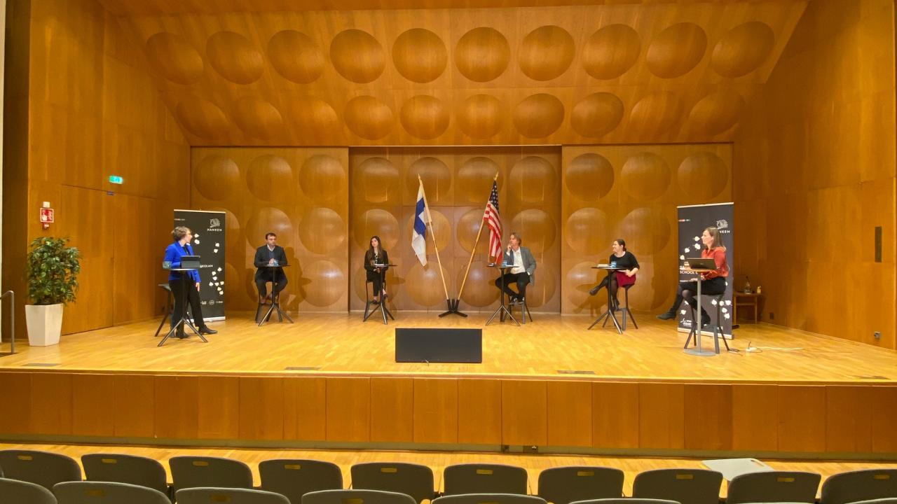 Alexandra Pasternak-Jackson, VD för Amcham i Finland modererade diskussionen och Camilla Wardi, chef för näringslivsrelationer och samverkan på Hanken, fungerade som värd. Vi hörde också hälsningar från Hankens rektor Karen Spens och USA: s ambassadör i Finland, Robert Pence.