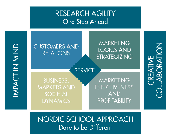 Our research is focused on service research and philosophy within it the four focus areas, also shown in the figure below: