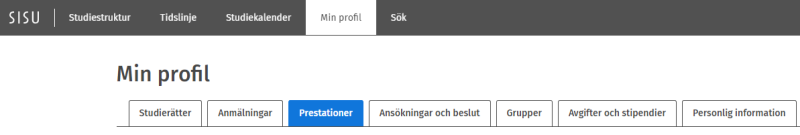 För att ta ut ett studieprestationsutdrag, gå till sidan Min profil, och sedan till fliken Prestationer.