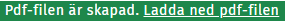 3. Det kan ta en stund för intyget att skapas. När intyget är färdigt får du meddelandet ”PDF-filen är färdig. Ladda ner PDF-filen” i en grön balk upptill på sidan. Genom att klicka på länken i meddelandet kan du öppna eller spara filen.