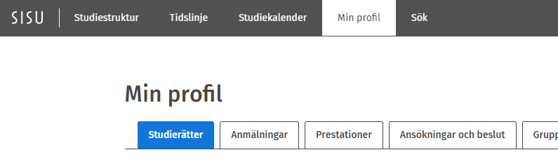 För att ta ut ett studieprestationsutdrag, gå till sidan Min profil, och fliken Studierätter som öppnas automatiskt.